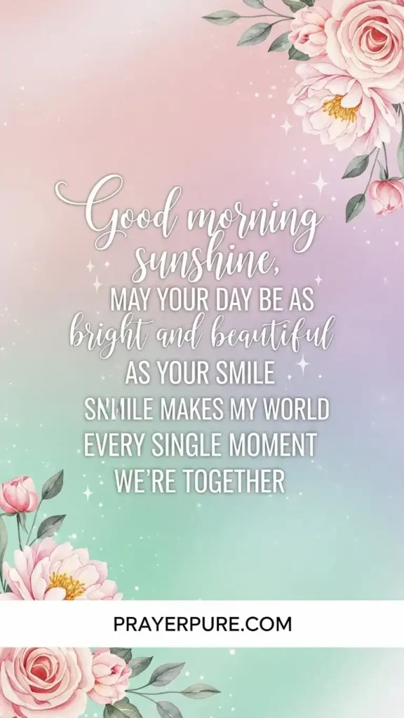 Good morning sunshine, may your day be as bright and beautiful as your smile makes my world every single moment we’re together.