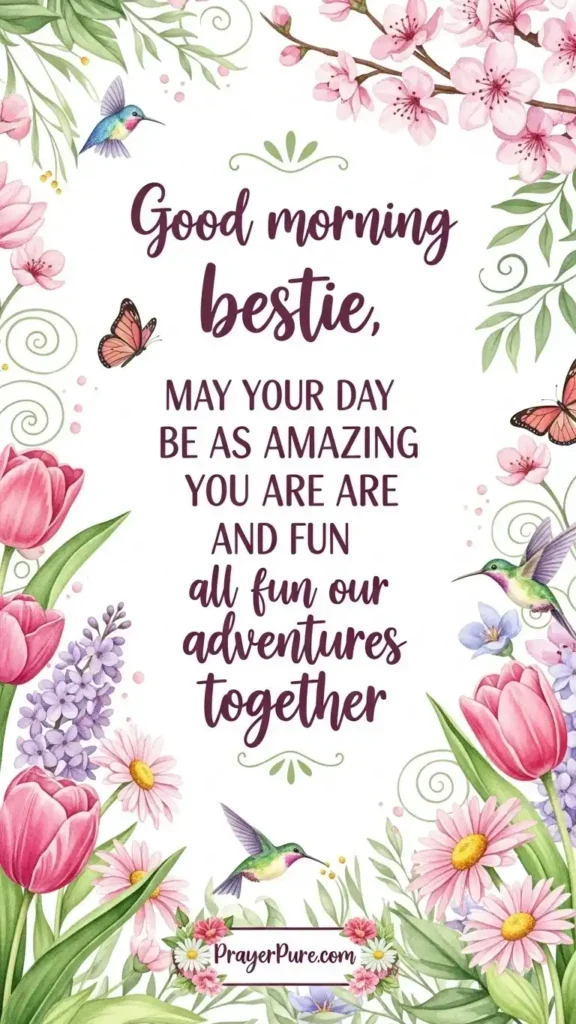 Good morning bestie, may your day be as amazing as you are and as fun as all our adventures together.