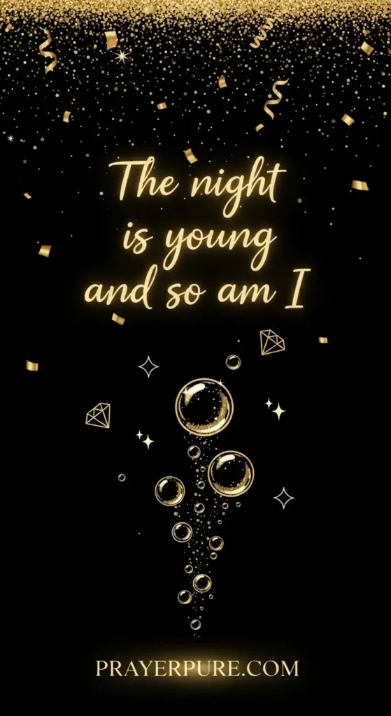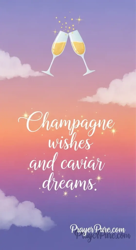 Champagne wishes and caviar dreams Dressed to kill with kindness After dark is when I truly shine Evening gowns and elevated conversations The night is young and so am I Sparkle is my neutral color Living for the nights I’ll never forget Glitter runs through my veins Dancing through life in designer heels Midnight thoughts and champagne toasts