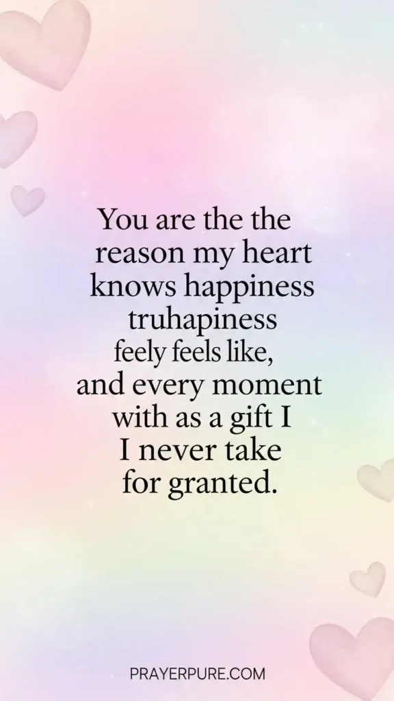 You are the reason my heart knows what happiness truly feels like, and every moment with you is a gift I never take for granted.