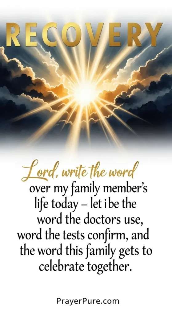 Lord, write the word recovery over my family member’s life today — let it be the word the doctors use, the word the tests confirm, and the word this family gets to celebrate together.