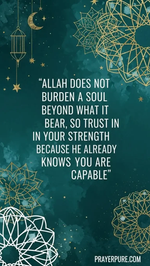 Allah does not burden a soul beyond what it can bear, so trust in your strength because He already knows you are capable.