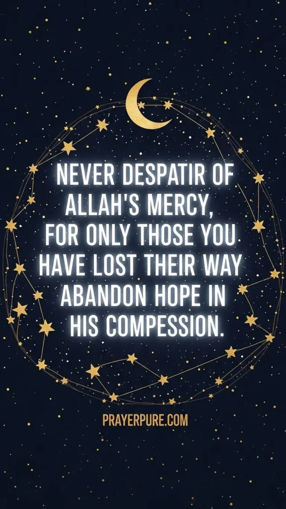 Never despair of Allah’s mercy, for only those who have lost their way abandon hope in His compassion.