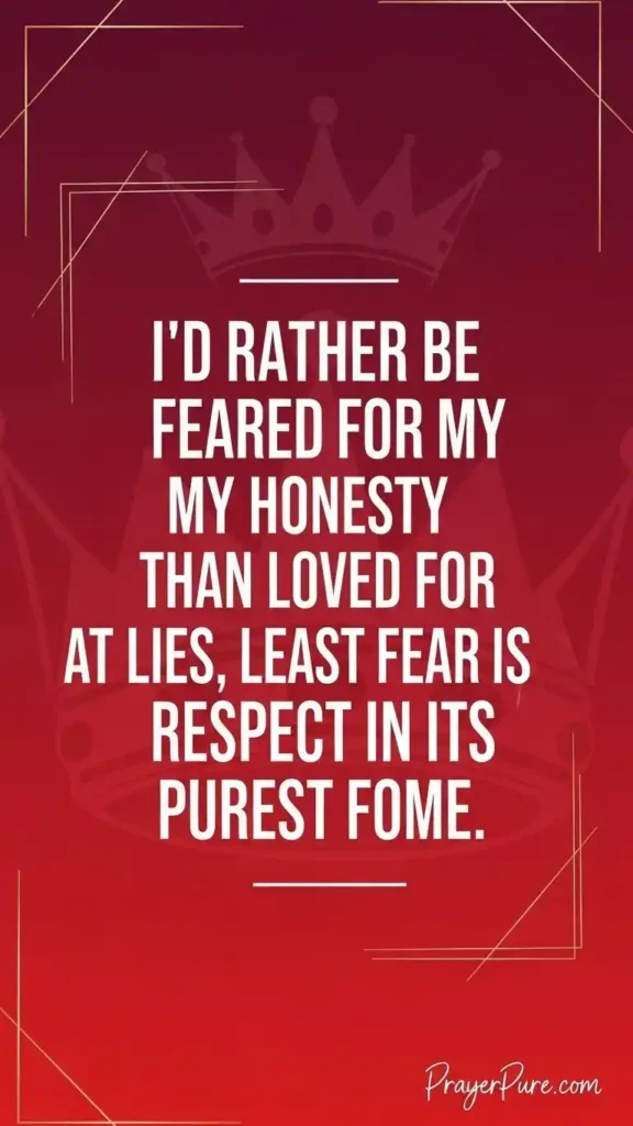 I’d rather be feared for my honesty than loved for my lies, at least fear is respect in its purest form.