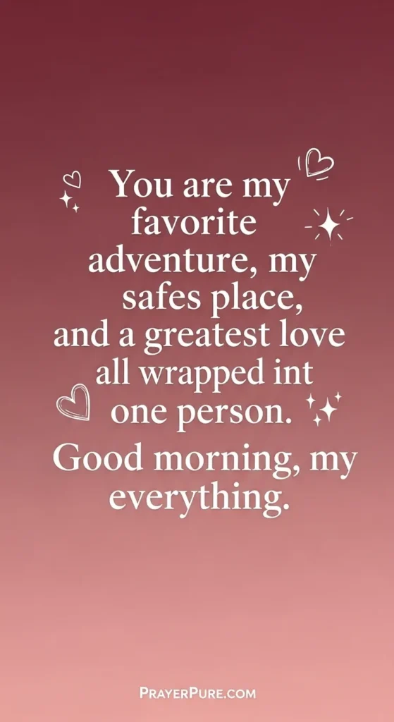 You are my favorite adventure, my safest place, and my greatest love all wrapped into one person. Good morning, my everything.