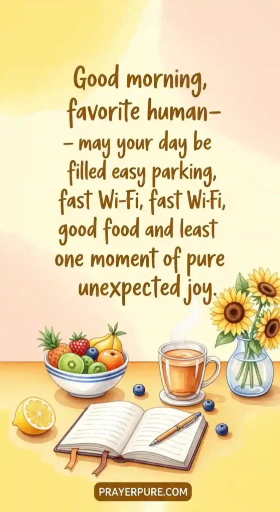 Good morning, favorite human — may your day be filled with easy parking, fast Wi-Fi, good food, and at least one moment of pure unexpected joy.