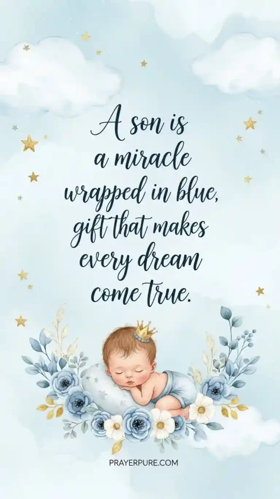 A son is a miracle wrapped in blue, a gift that makes every dream come true.