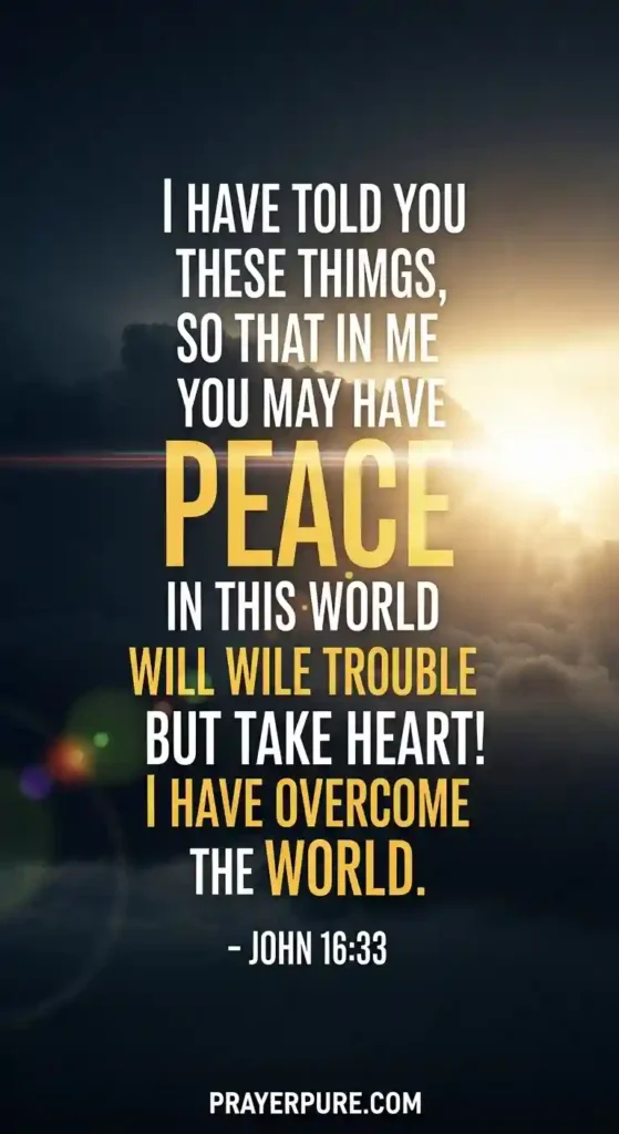 I have told you these things, so that in me you may have peace. In this world you will have trouble. But take heart! I have overcome the world (John 16:33).