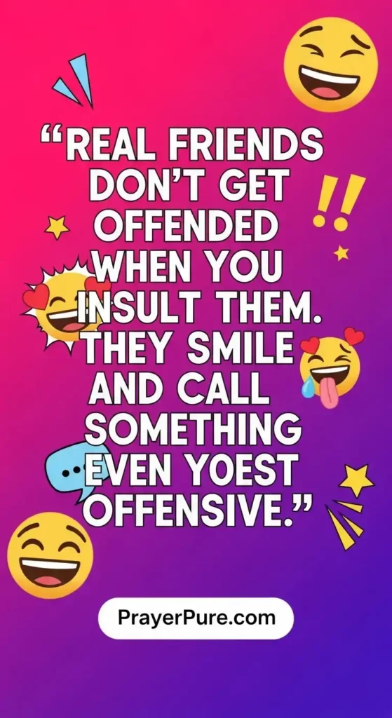 Real friends don’t get offended when you insult them. They smile and call you something even more offensive.
