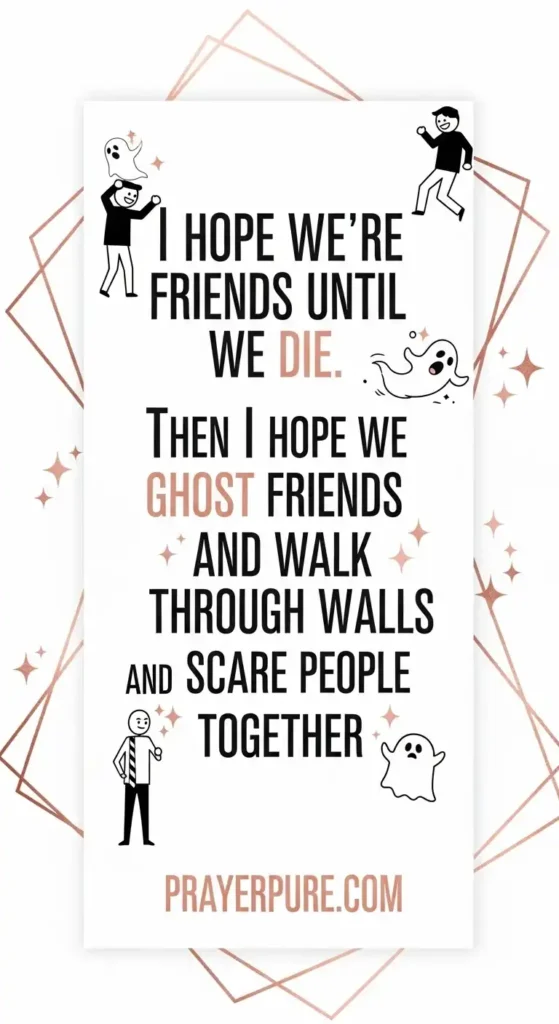 I hope we’re friends until we die. Then I hope we stay ghost friends and walk through walls and scare people together.