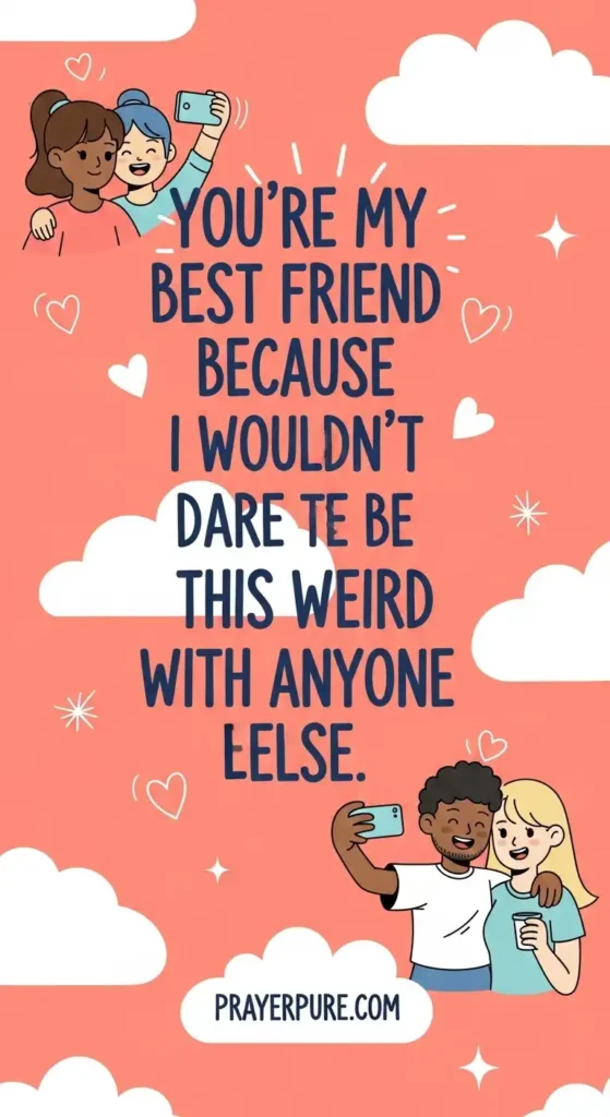 You’re my best friend because I wouldn’t dare be this weird with anyone else.