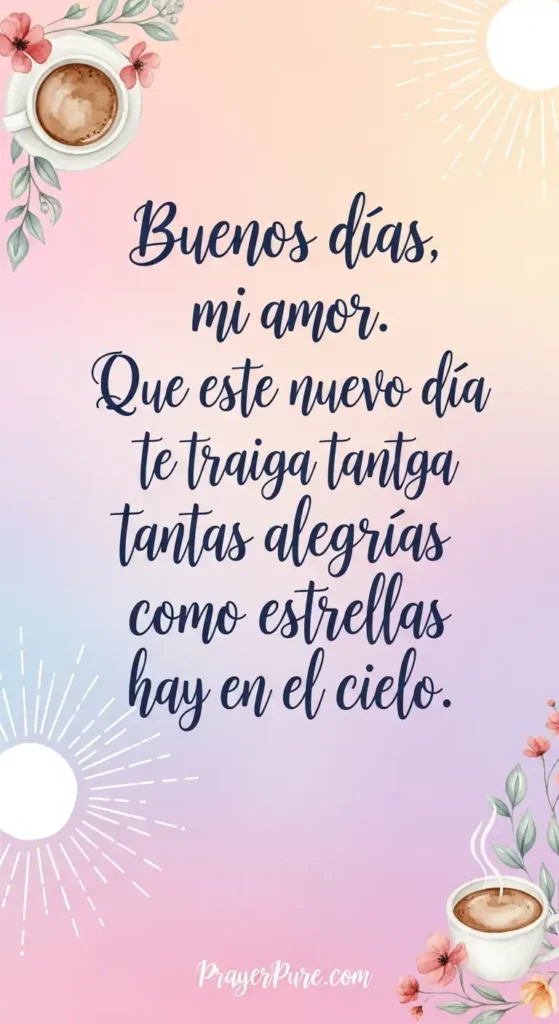 Buenos días, mi amor. Que este nuevo día te traiga tantas alegrías como estrellas hay en el cielo.