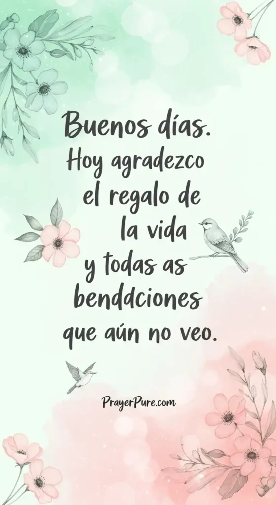 Buenos días. Hoy agradezco el regalo de la vida y todas las bendiciones que aún no veo.