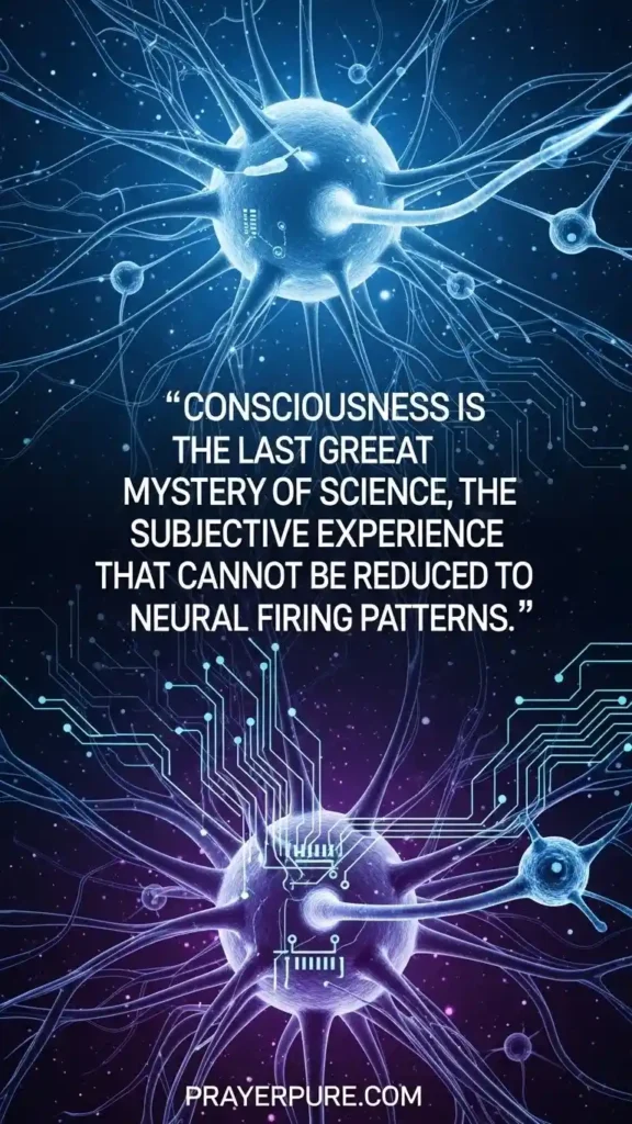 Consciousness is the last great mystery of science, the subjective experience that cannot be reduced to neural firing patterns.