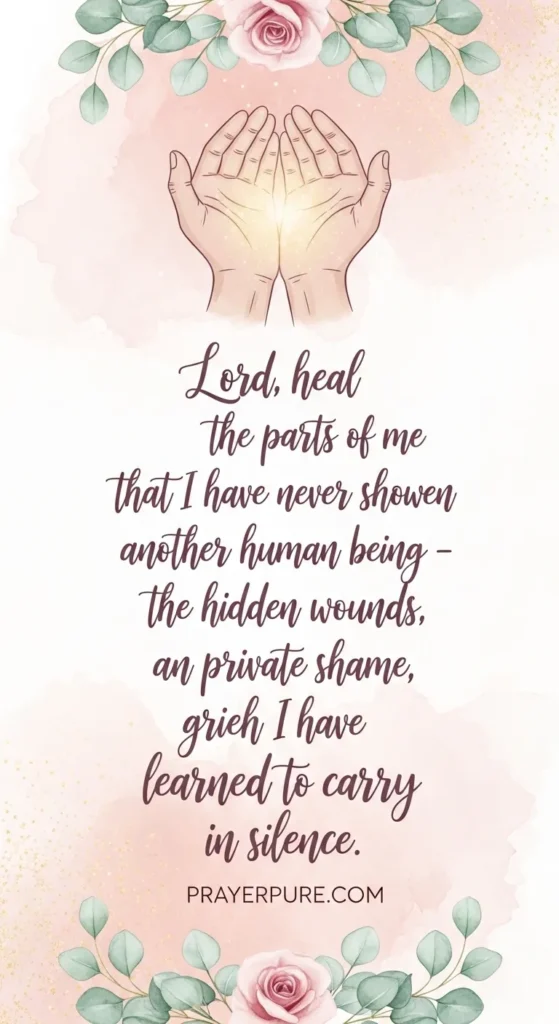 Lord, heal the parts of me that I have never shown another human being — the hidden wounds, the private shame, the grief I have learned to carry in silence.