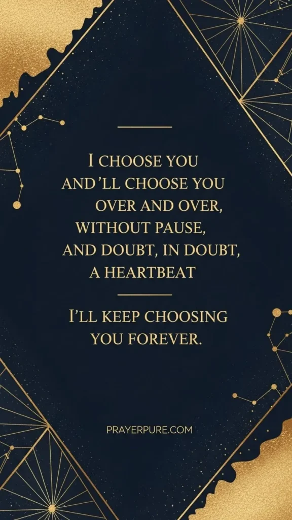I choose you and I’ll choose you over and over, without pause, without doubt, in a heartbeat, I’ll keep choosing you forever.