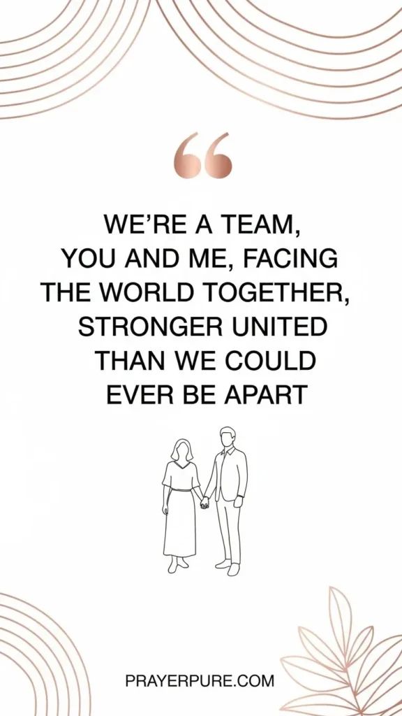 We’re a team, you and me, facing the world together, stronger united than we could ever be apart.