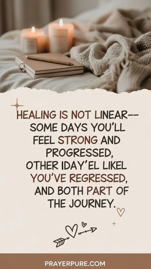 Healing is not linear—some days you’ll feel strong and progressed, other days you’ll feel like you’ve regressed, and both are part of the journey.
