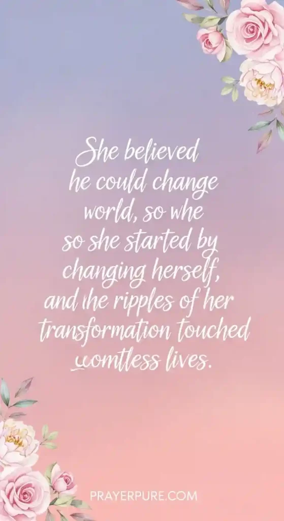 She believed she could change the world, so she started by changing herself, and the ripples of her transformation touched countless lives.