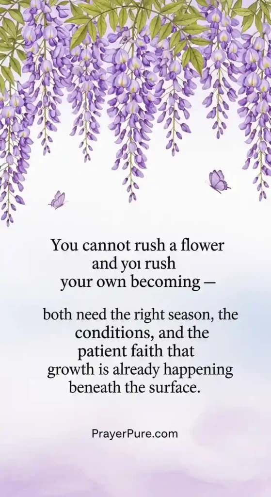 You cannot rush a flower and you cannot rush your own becoming — both need the right season, the right conditions, and the patient faith that growth is already happening beneath the surface.
