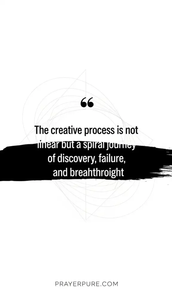 The creative process is not linear but a spiral journey of discovery, failure, and breakthrough.