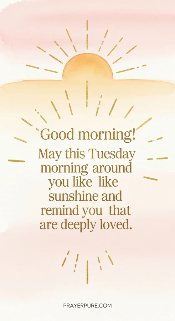 Good morning! May this Tuesday morning wrap around you like sunshine and remind you that you are deeply loved. Rise and shine, it’s Tuesday — a brand new canvas painted fresh by the hand of God just for you. Every Tuesday morning is a second chance dressed in quiet clothes. Don’t miss the blessing hiding in the ordinary. May your Tuesday morning be as warm as your favorite blanket and as bright as your biggest dream. Good morning on this beautiful Tuesday! Breathe deeply, smile gently, and trust that today holds something wonderful for you. This Tuesday morning, before the world gets loud, take a moment to whisper thank you — your blessings are already on their way. Wake up and welcome Tuesday with an open heart. The sun rose just to remind you that you made it through another night. May the first light of this Tuesday morning fill your soul with peace and your heart with unstoppable hope. Hello, Tuesday! Thank you for showing up and giving me one more reason to believe that life is genuinely beautiful. Let this Tuesday morning be the start of something you never expected — something better than you ever planned.