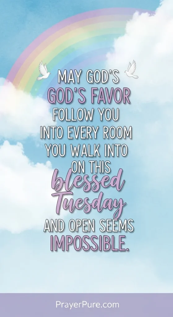 Lord, thank You for the gift of this Tuesday. May every breath I take today be an act of worship. May God’s favor follow you into every room you walk into on this blessed Tuesday and open what seems impossible. I pray this Tuesday carries with it the peace of God that surpasses all human understanding. Receive it fully. May your Tuesday be covered in prayer, protected by angels, and perfumed with the fragrance of God’s grace. On this Tuesday, may the Lord renew your strength like the eagle’s and remind you that you are never alone. God’s mercies are new every morning — and that includes every single blessed Tuesday morning without exception. May your spirit be refreshed this Tuesday as if you just came from the most powerful prayer you’ve ever experienced. Blessed is the Tuesday surrendered to God’s plan. May you trust His timing and rest in His perfect love today. This Tuesday, may heaven’s windows open over your life and pour out blessings you do not have room to contain. I declare this Tuesday blessed, anointed, covered in grace, and filled with the goodness of a God who never fails.