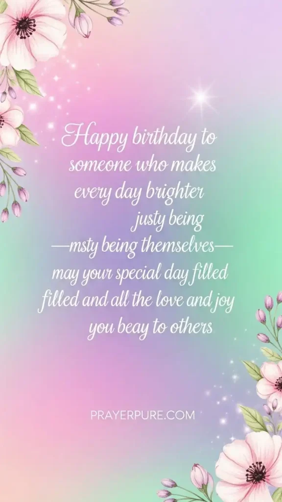 Happy birthday to someone who makes every day brighter just by being themselves—may your special day be filled with all the love and joy you bring to others.