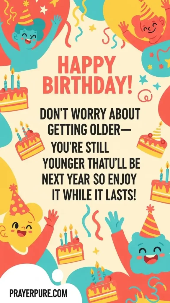 Happy birthday! Don’t worry about getting older—you’re still younger than you’ll be next year, so enjoy it while it lasts!