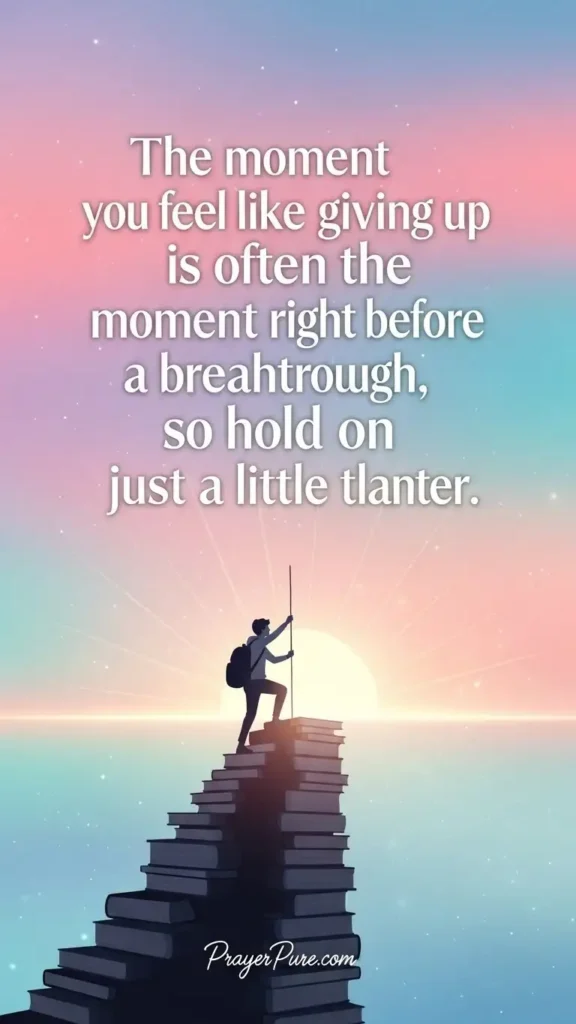 The moment you feel like giving up is often the moment right before a breakthrough, so hold on just a little longer.