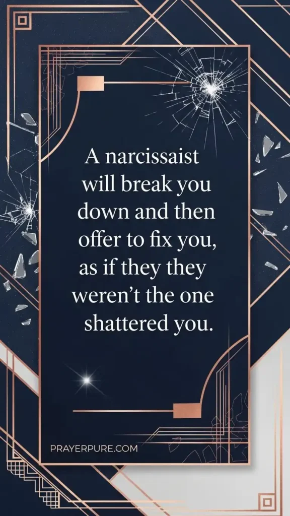 A narcissist will break you down and then offer to fix you, as if they weren’t the one who shattered you.