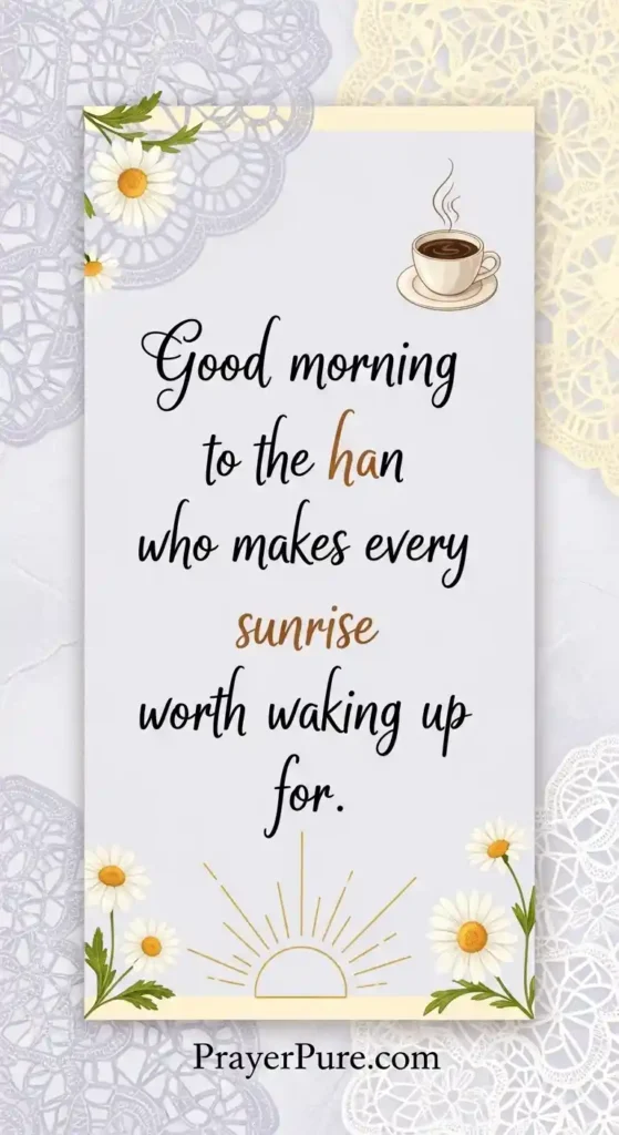 Good morning, handsome—you’re the first thought on my mind and the smile on my face.