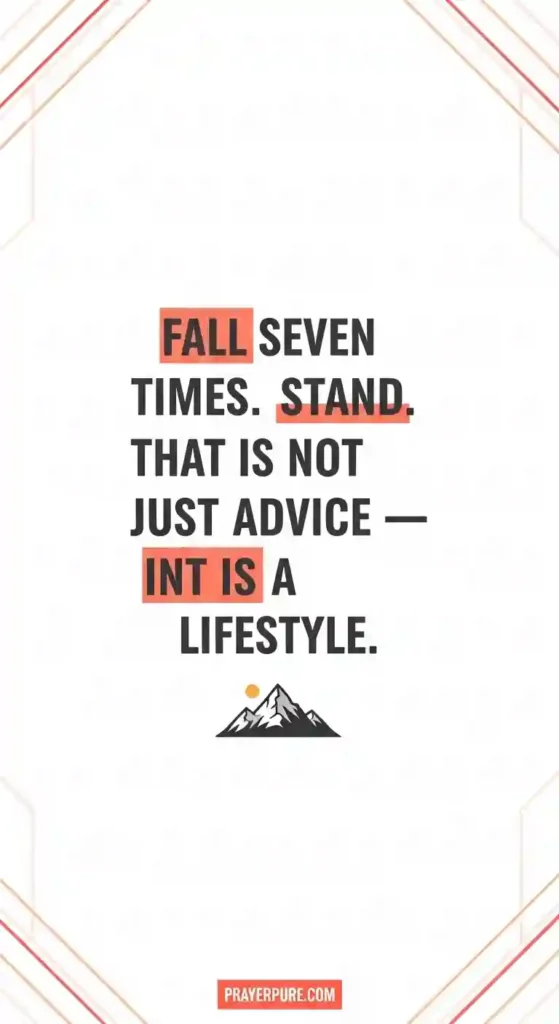 Fall seven times. Stand eight. That is not just advice — that is a lifestyle.