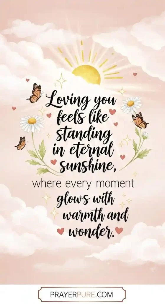 Loving you feels like standing in eternal sunshine, where every moment glows with warmth and wonder.