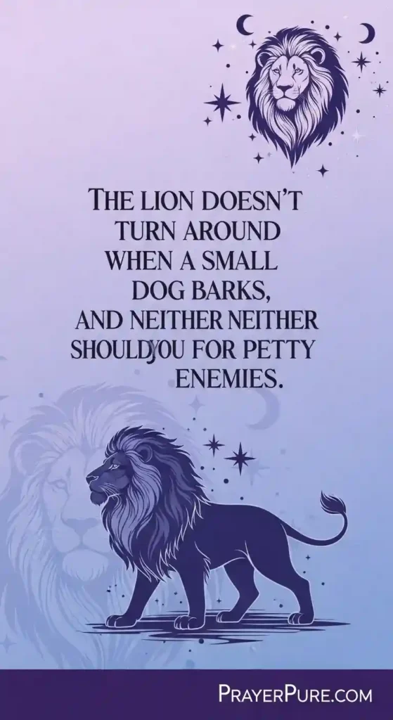 The lion doesn’t turn around when a small dog barks, and neither should you for petty enemies.