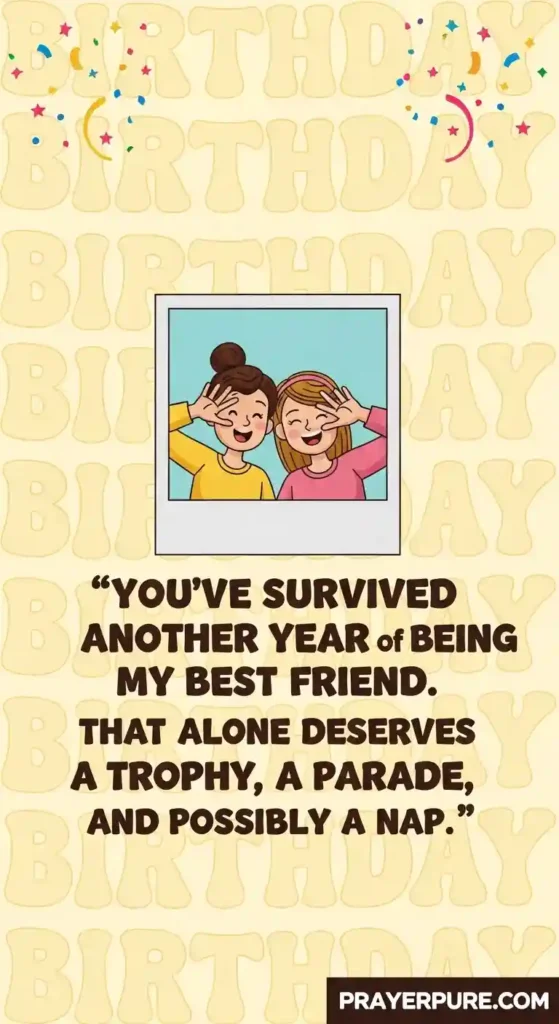 You’ve survived another year of being my best friend. That alone deserves a trophy, a parade, and possibly a nap.