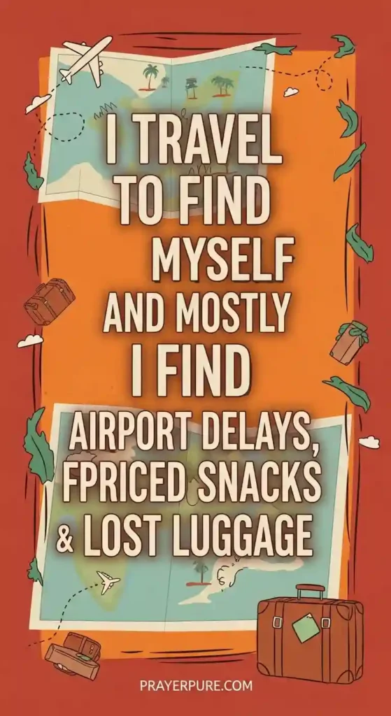 I travel to find myself and mostly I find airport delays, overpriced snacks, and lost luggage.
