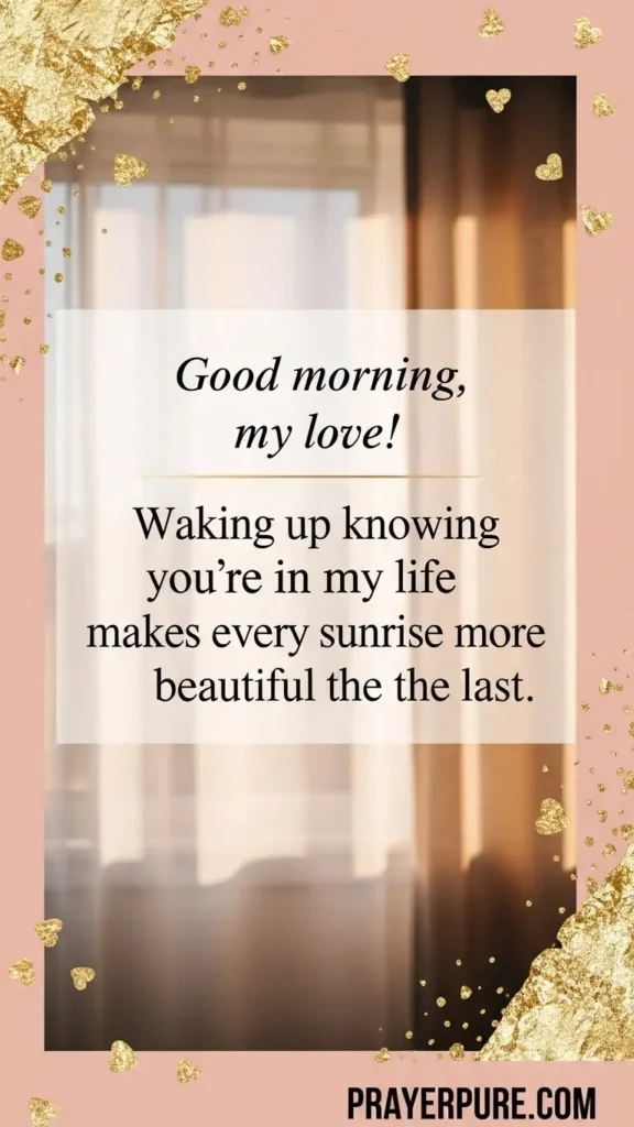 Good morning, my love! Waking up knowing you’re in my life makes every sunrise more beautiful than the last.
