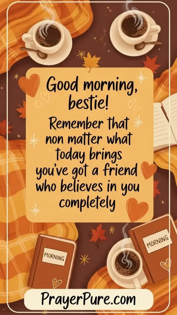 Good morning, bestie! Remember that no matter what today brings, you’ve got a friend who believes in you completely.