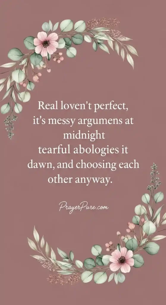 Real love isn’t perfect, it’s messy arguments at midnight, tearful apologies at dawn, and choosing each other anyway.