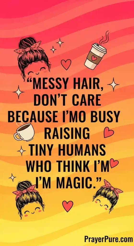 Messy hair, don’t care, because I’m too busy raising tiny humans who think I’m magic.
