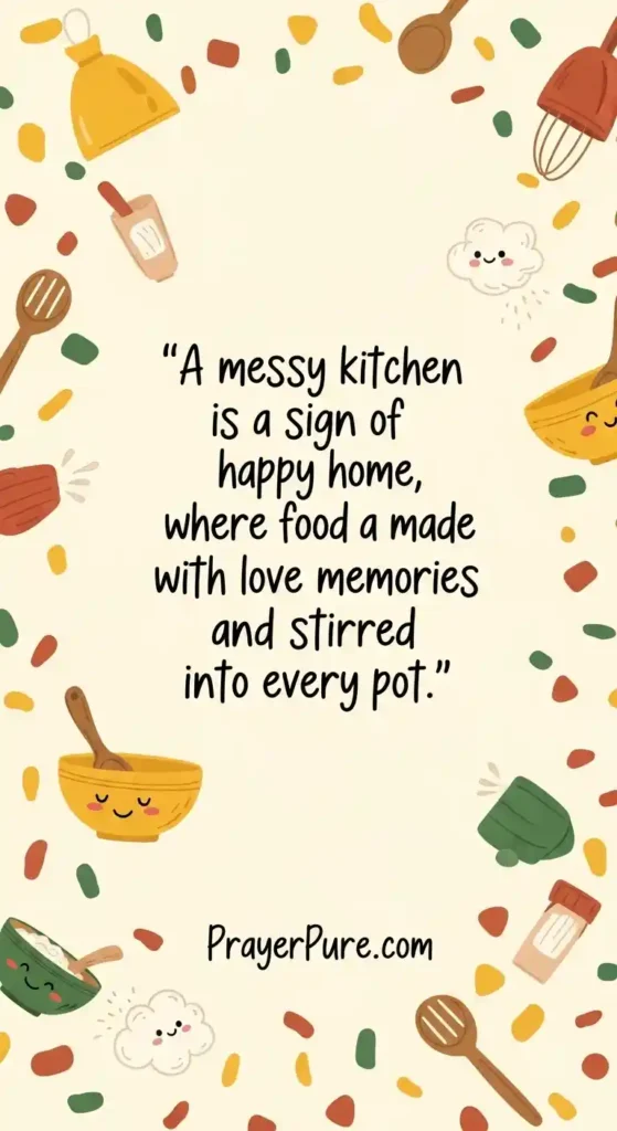 A messy kitchen is a sign of a happy home, where food is made with love and memories are stirred into every pot.