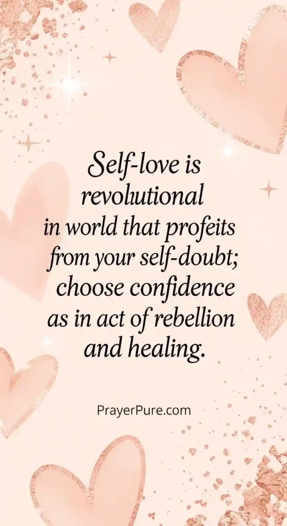 Self-love is revolutionary in a world that profits from your self-doubt; choose confidence as an act of rebellion and healing.