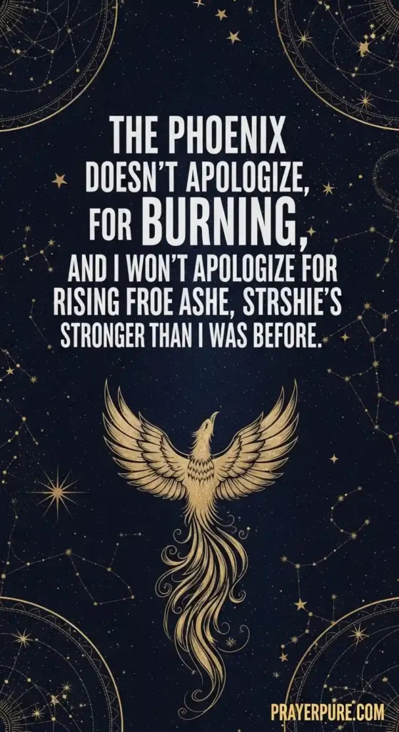 The phoenix doesn’t apologize for burning, and I won’t apologize for rising from the ashes stronger than I was before.