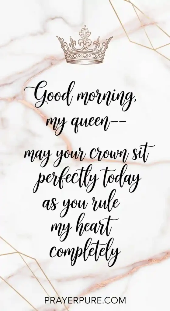 Good morning, my queen—may your crown sit perfectly today as you rule my heart completely.